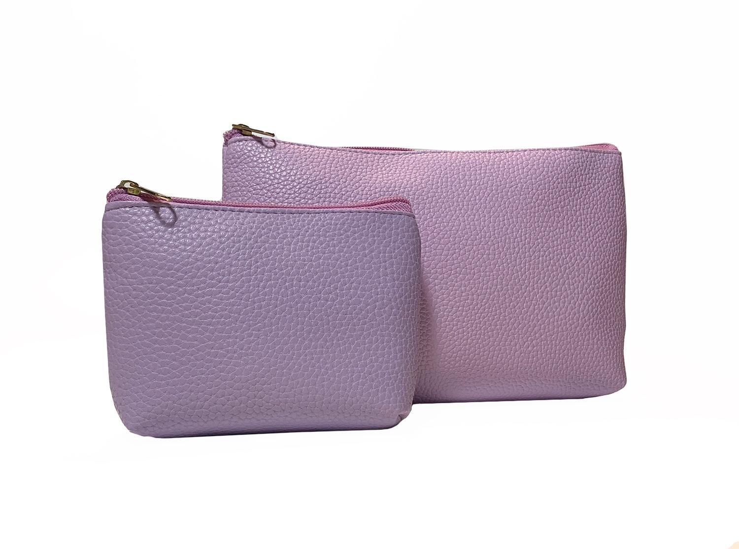 Duo Cosmetiquera tipo barco & Cosmetiquera/Estuche compacto tipo monedero, material litchi con textura, corredera dorada.